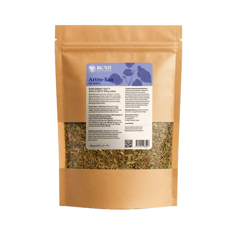 Artro-San stanowi mieszankę ziół ciętych – korzenia łopianu większego, ziela rzepiku, liścia brzozy, pięciornika kurzego ziela, liścia maliny, korzenia mniszka lekarskiego.